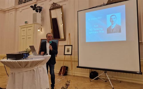 Im Herbst 2022 konnten die Arbeiten im Wesentlichen abgeschlossen werden. Genau an seinem 50. Todestag, am 28. Oktober 2022, luden Johannes Rieder, Wolfgang Paar und Detlev Gamon zu einem Abend in den Festsaal des Reichensteinhofes in Poysdorf ein, wo Franz Thiel einmal vor den Vorhang gebeten wurden, eine Anerkennung, die er zu seinen Lebzeiten nicht erhalten hatte.
